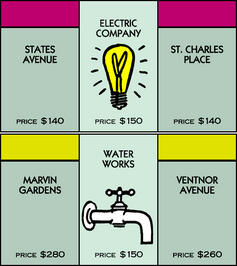 Illustration about the iconic monopoly game electric company logo.if you can get both of the utilities on the board you can collect big money.