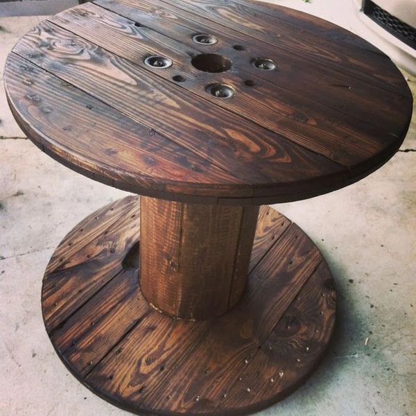 Large refurbished wooden spool table. Built to seat 5 ... from i.pinimg.com See more ideas about spool tables, spool furniture, wire spool tables. See more ideas about spool tables, wooden spools, wooden spool tables. Constructed benches from scratch out of 2x8. What can i do with old wooden spools? See more ideas about wood spool, spool furniture, spool tables. Original furniture that you can make from a reclaimed wooden cable spool. Repurposed reels from cables have the same characteristics as the wood from pallets. Cut off parts of the bottom circle, reinforced the boards needed with screws and sanded entire spool down smooth and added some paint and stain!